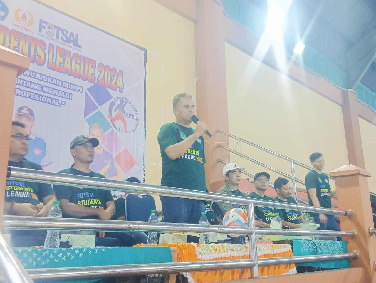 Kepala Dinas Pendidikan dan Kebudayaan Kabupaten Sintang membuka pelaksanaan Futsal Students League tahun 2024 di Indoor Apang Semangai pada Selasa, 8 Oktober 2024 malam.