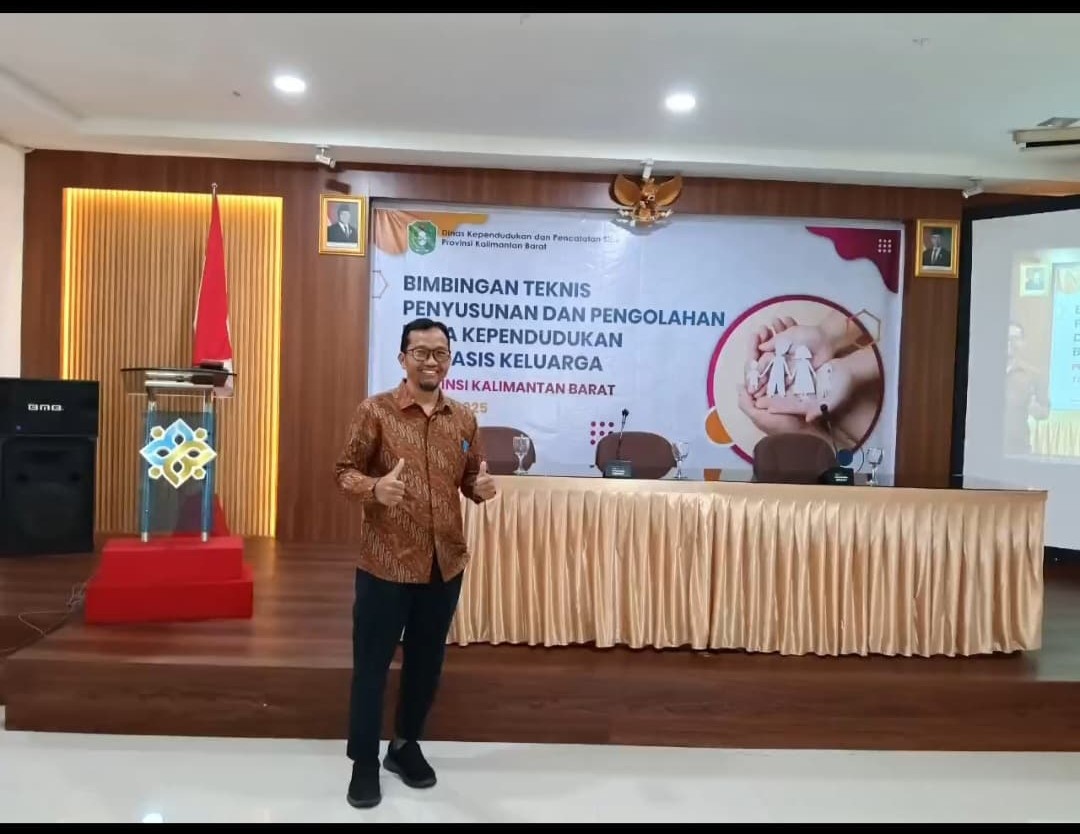 Arfan Kepala Bidang Pengendalian Penduduk dan Keluarga Berencana pada Dinas Keluarga Berencana, Pemberdayaan Perempuan dan Perlindungan Anak (DKBP3A) Kabupaten Sintang, mengikuti Bimbingan Teknis (Bimtek) Penyusunan dan Pengolahan Data Kependudukan Berbasis Keluarga yang diselenggarakan untuk kabupaten/kota se-Kalimantan Barat di Aula Dinas Kependudukan dan Pencatatan Sipil Provinsi Kalimantan Barat pada Selasa-Rabu, 11-12 November 2025.