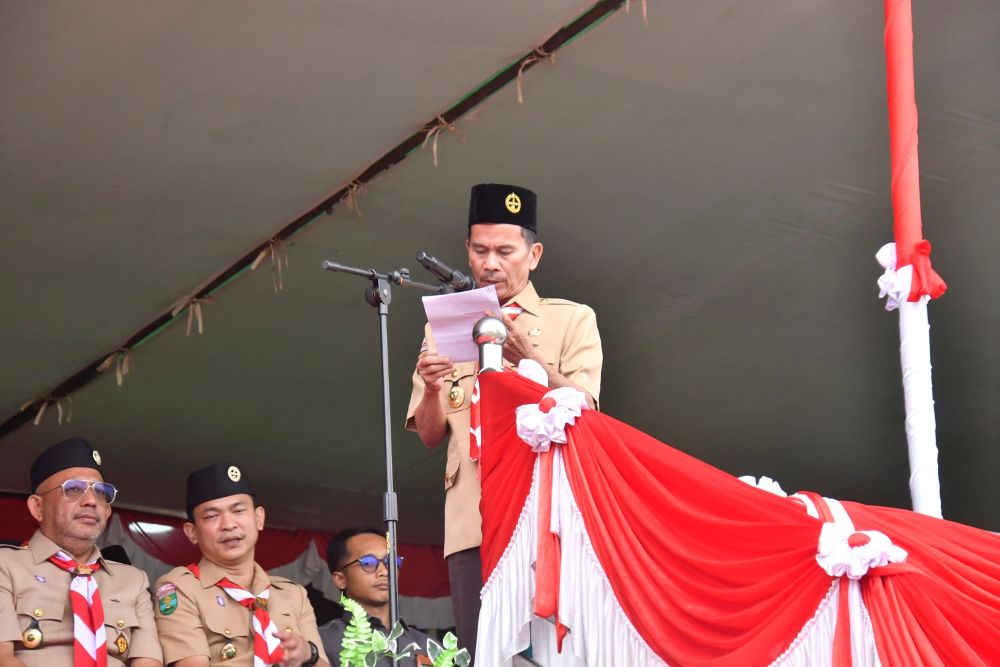 Bupati Sintang Gregorius Herkulanus Bala saat upacara pembukaan di Stadion Baning Sintang menyampaikan raimuna bertujuan mengembangkan kreativitas, inovasi dan berbagi pengalaman.