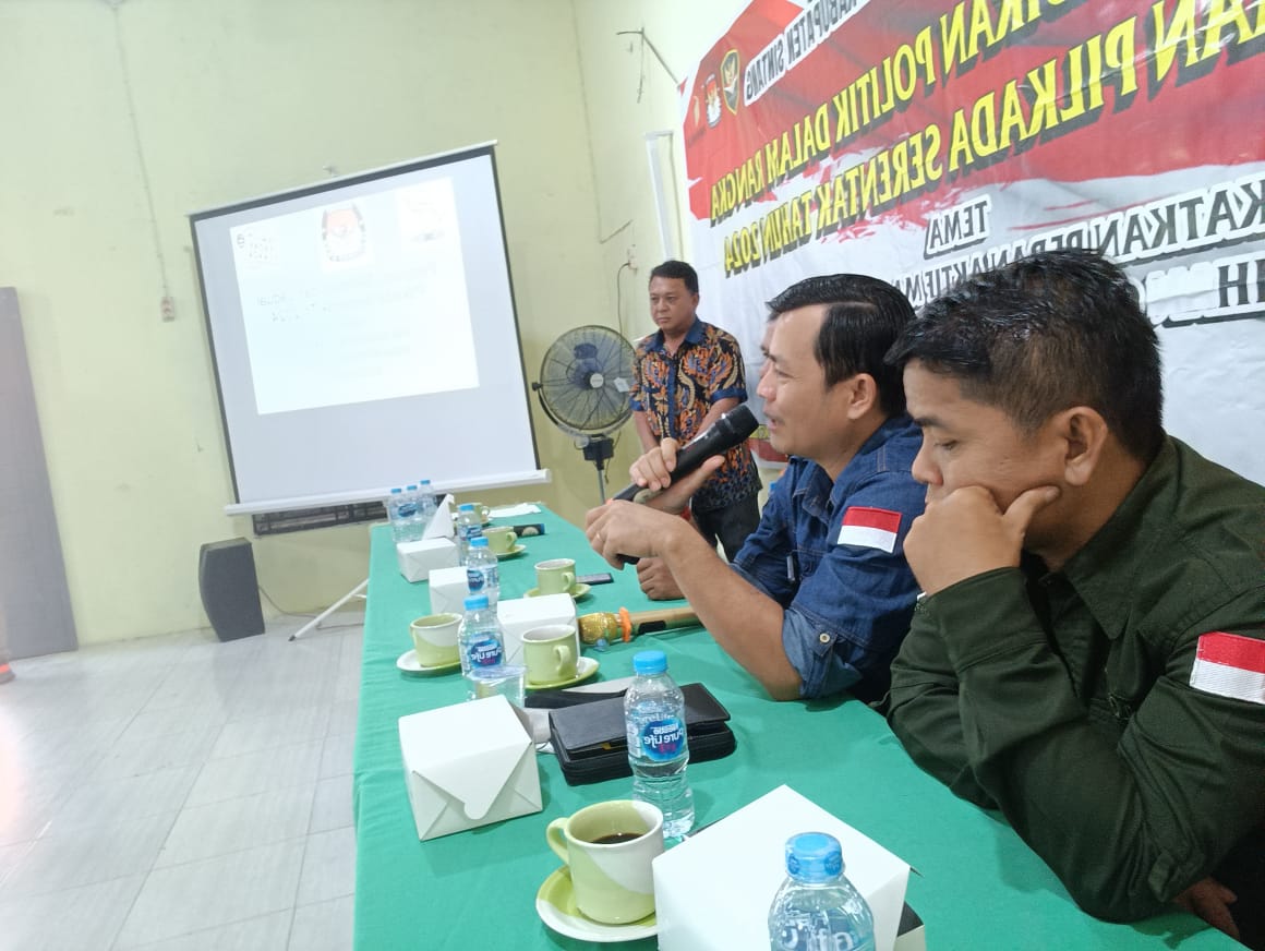 Sintang-www.sintang-terkini.com-Edi Susanto Ketua Komisi Pemilihan Umum Kabupaten Sintang menjadi narasumber pada kegiatan Sosialisasi Pendidikan Politik yang diselenggarkan oleh Badan Kesatuan Bangsa dan Politik Kabupaten Sintang di Aula Kantor Desa Sungai Ana pada Kamis, 3 Oktober 2024.