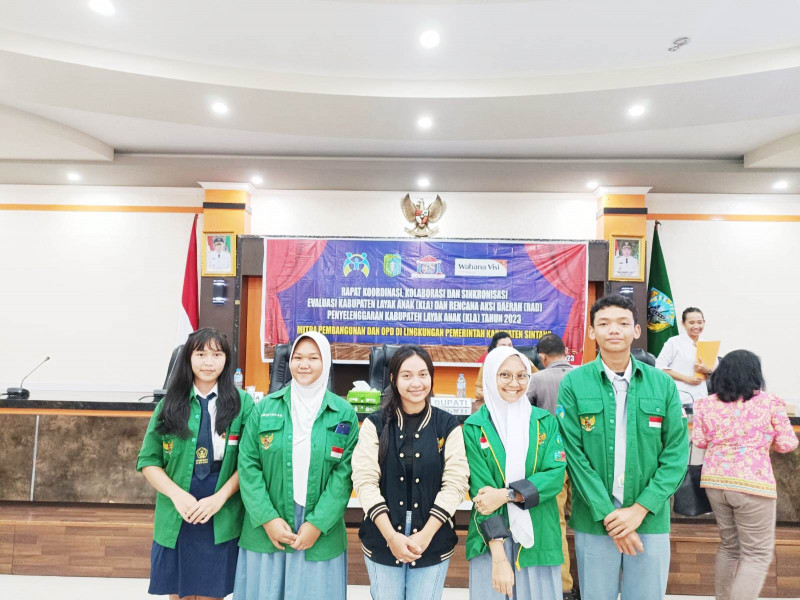 Sintang-www.sintang-terkini.com-Forum Anak Kabupaten Sintang ikut menghadiri rapat koordinasi, kolaborasi dan sinkronisasi evaluasi Kabupaten Layak Anak dan Rencana Aksi Daerah Penyelenggaraan KLA Tahun 2023 di Balai Praja Kantor Bupati Sintang pada Senin, 6 November 2023.
