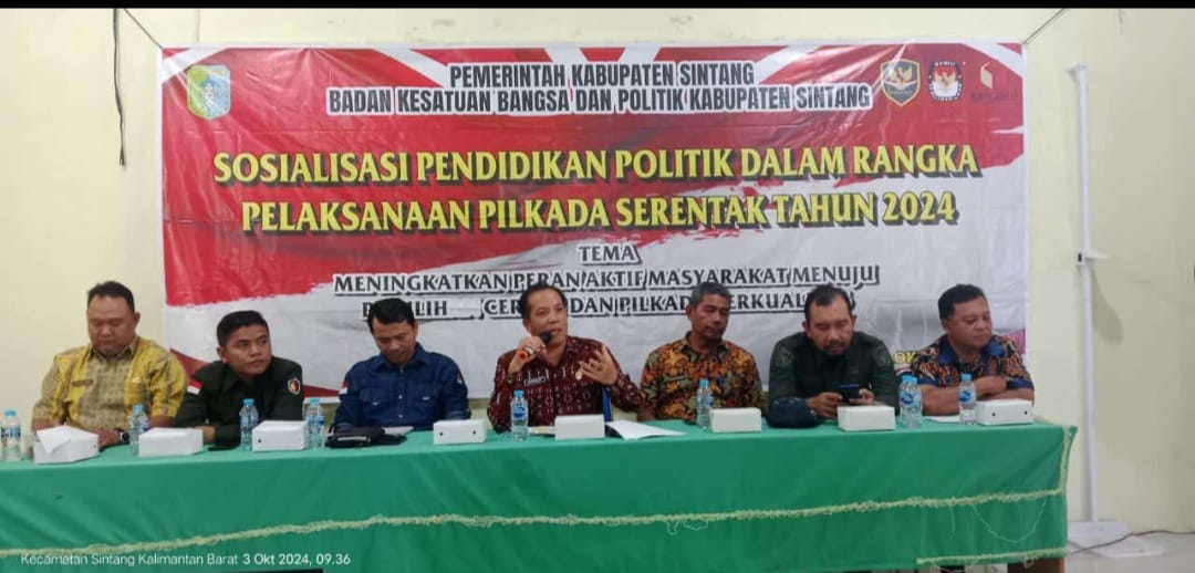 Kusnidar Kepala Badan Kesatuan Bangsa dan Politik Kabupaten Sintang menyampaikan bahwa Sosialisasi Pendidikan Politik ini merupakan salah satu program yang dilaksanakan oleh Pemkab Sintang untuk mewujudkan pemilih yang cerdas.