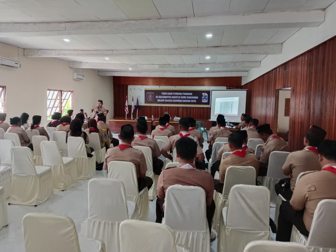 Puluhan Para Pembina Pramuka dari 14 kabupaten dan kota di Provinsi Kalimantan Barat berkumpul di Aula Cadika Sintang dalam kegiatan Temu Gaok Pembina Pramuka se-Kalimantan Barat, Rabu (26/11). Pertemuan besar ini menjadi wadah konsolidasi bagi para pembina untuk menguatkan pembinaan, pendampingan, serta peran strategis Gerakan Pramuka di masing-masing daerah.