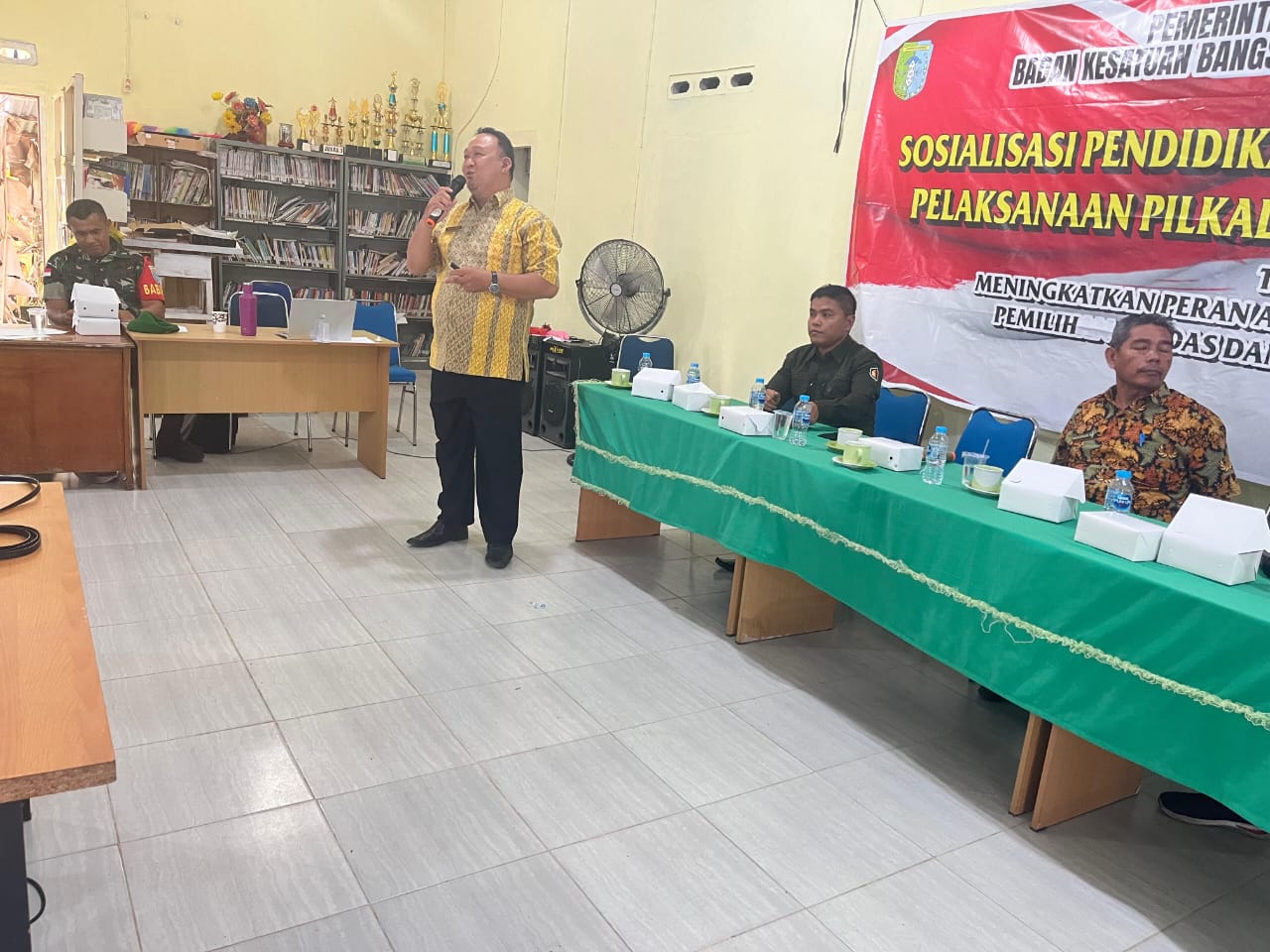 Dinas Komunikasi dan Informatika Kabupaten Sintang menjadi salah satu narasumber pada Kegiatan Sosialisasi Pendidikan Politik yang diselenggarkan oleh Badan Kesatuan Bangsa dan Politik Kabupaten Sintang di Aula Kantor Desa Sungai Ana pada Kamis, 3 Oktober 2024.